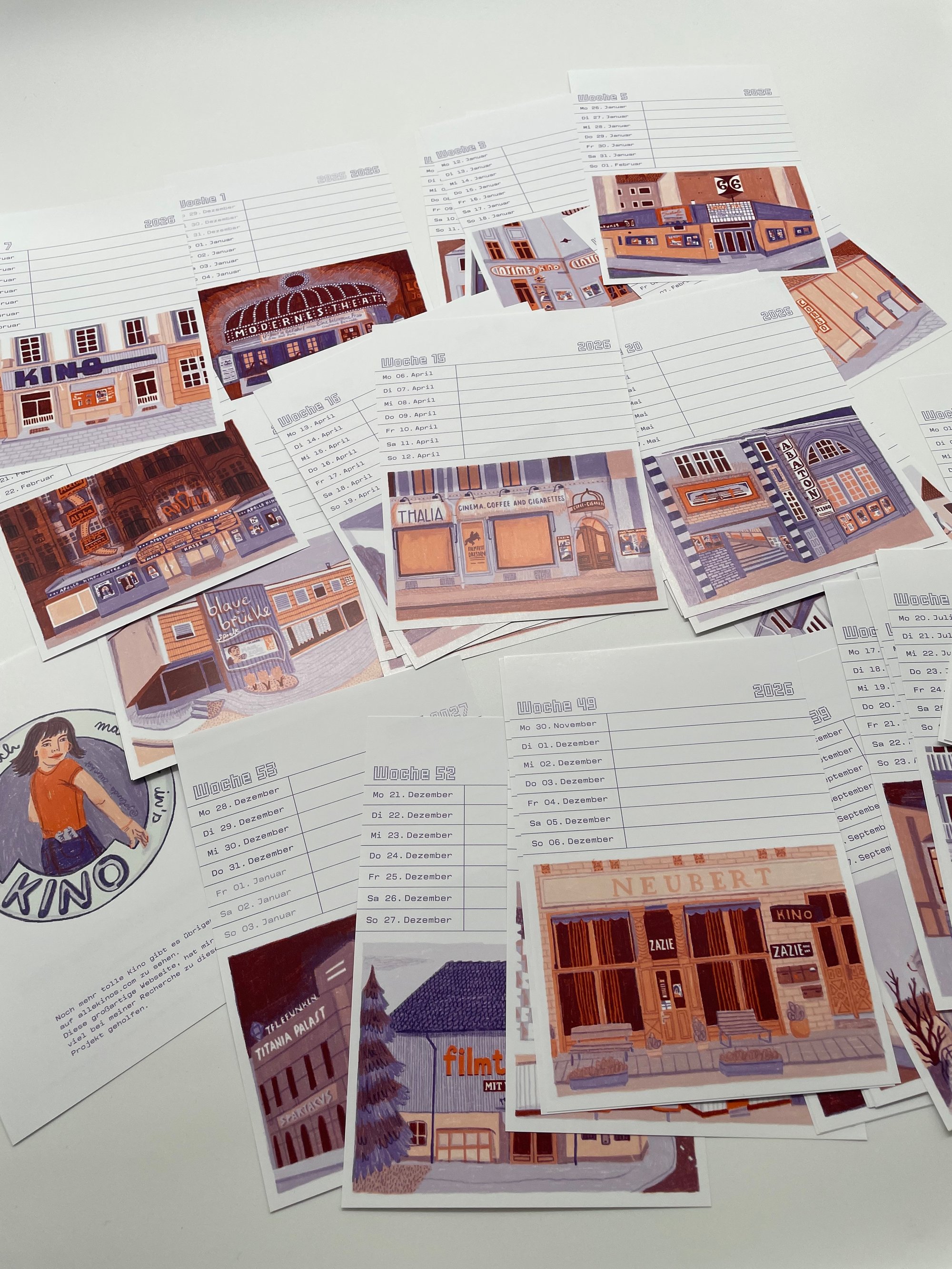 Entstanden aus meinem Projekt "Früher gab es mehr Kinos", sowie noch viel mehr gezeichneten Kinofassaden, ist dieser Kino-Wochenkalender für 2026!